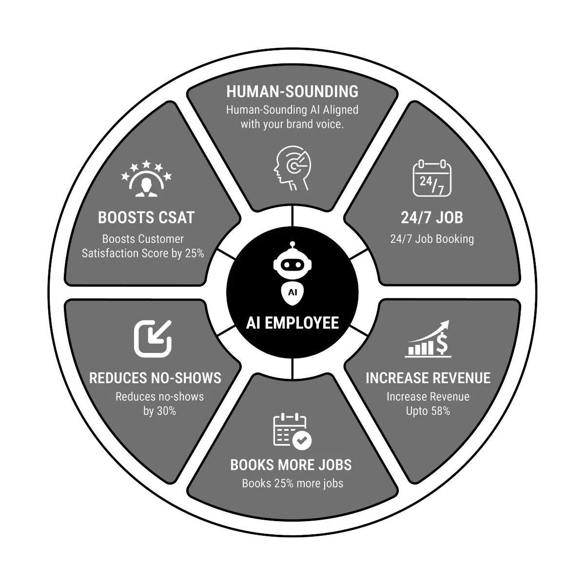AI Employees increase revenue by up to 58%, book 25% more jobs, reduce no shows by 30%, and increase CSAT by 25%.